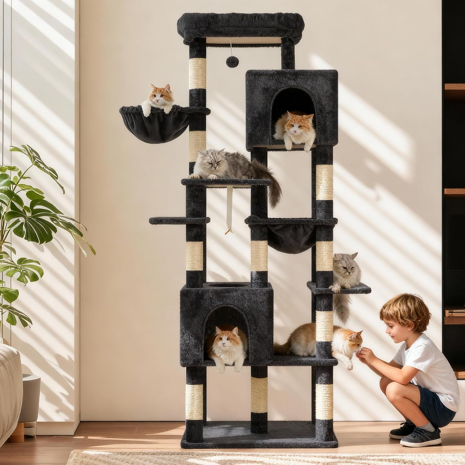 Scientifically Designed Structure: With multiple stepping platforms and perches, this cat tree for indoor cats large adult promotes healthy exercise by encouraging safe climbing and jumping, aligning with your cat's natural behaviors