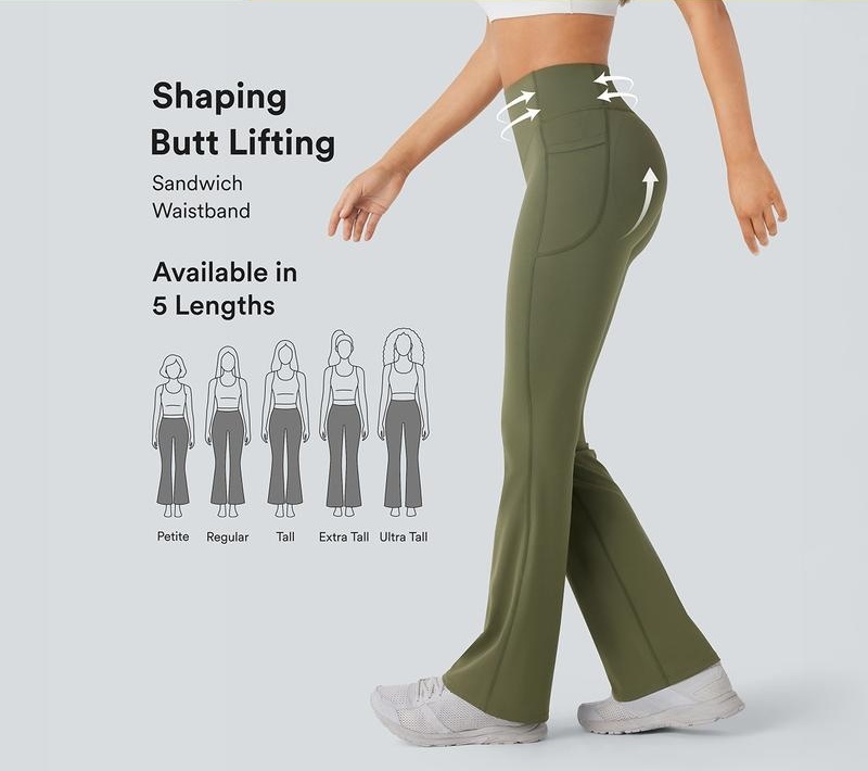 High Waisted Scrunch Butt Lifting Tummy Control Pocket Shaping Yoga Bootcut Leggings