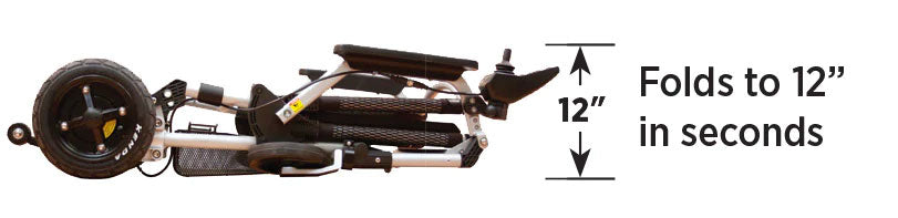 We is a lightweight, portable power chair that folds to 12″ and loads easily into your car’s trunk or back seat.