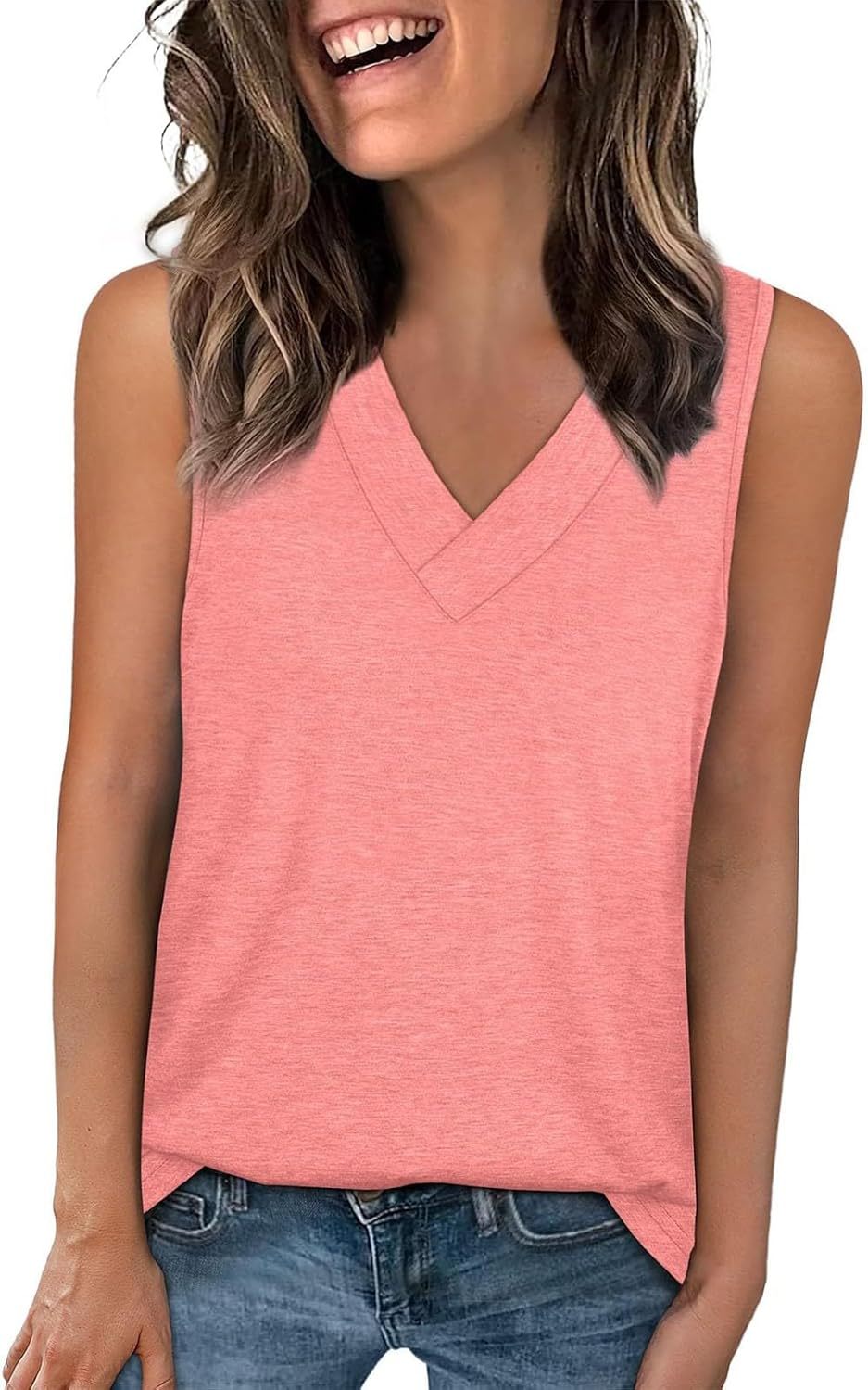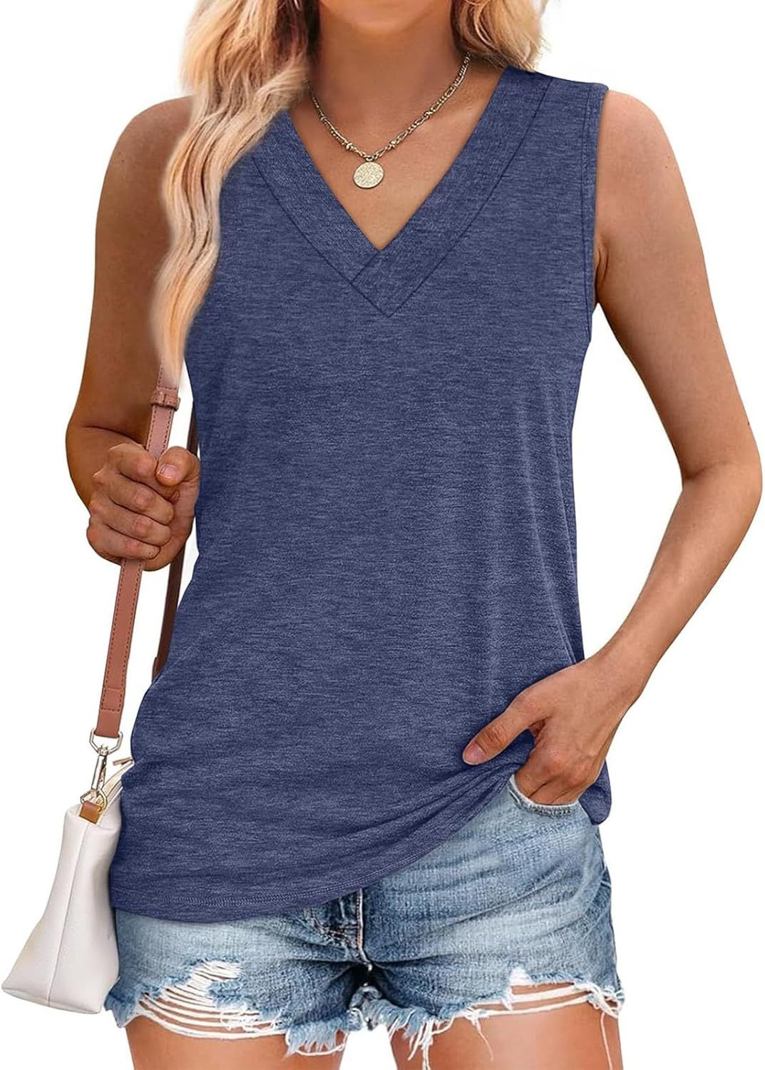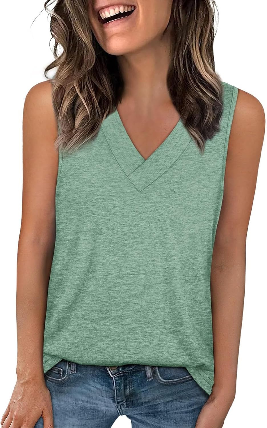 Womens V Neck Tank Tops Sleeveless Solid Color Comfy Tanks