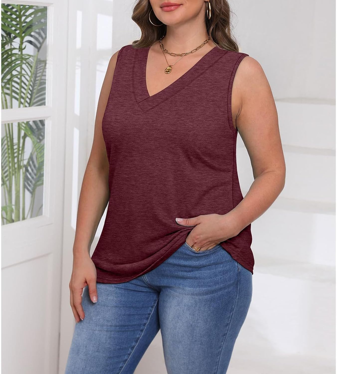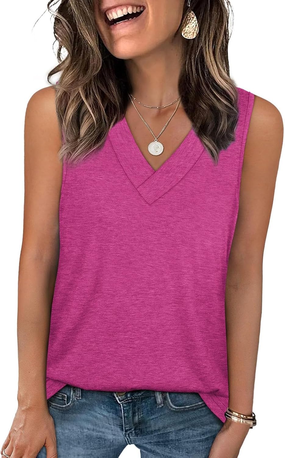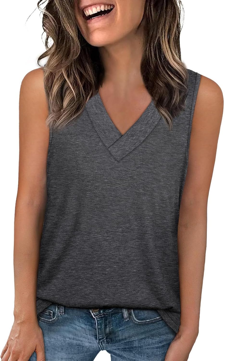 Womens V Neck Tank Tops Sleeveless Solid Color Comfy Tanks