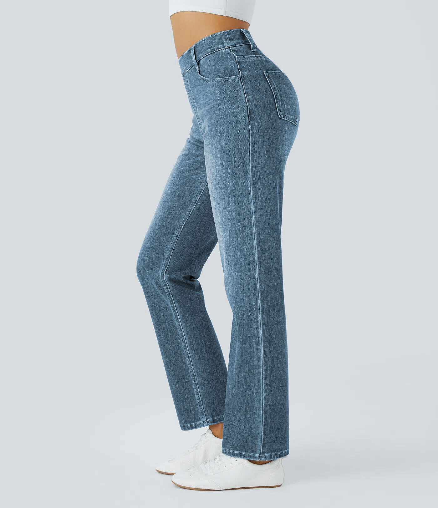 Stretch-Knit Straight-Leg Jeans with Multiple Pockets