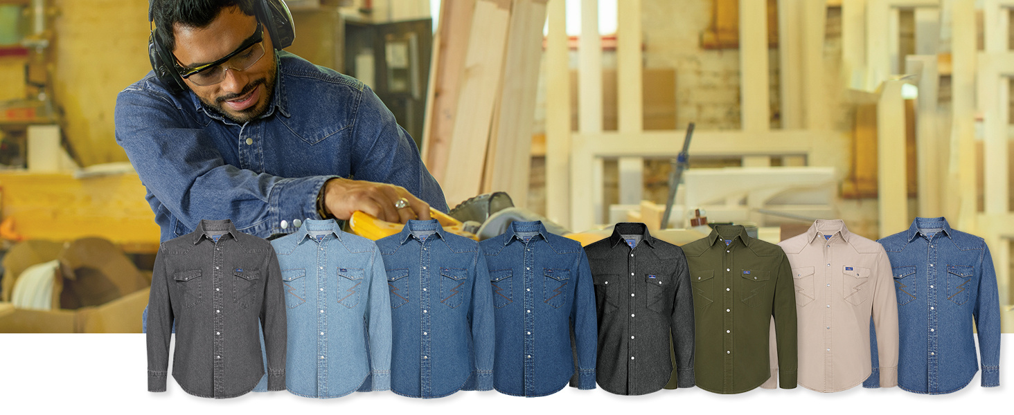 Peaked Western Yokes:The front and back yokes provide a classic Western look, offering both style and a reinforced structure for added durability. Adjustable Pearl Snap Cuffs:Three pearl snap adjustable cuffs deliver a secure, customizable fit, ensuring your sleeves stay in place while you work, enhancing both functionality and comfort. Authentic Pearl Snap Flap Pockets:Two front flap pockets with snap closures and the recognizable "Z" stitching offer convenient, secure storage for small essentials like pens or notepads. Long Sleeve Design:This long sleeve shirt provides added coverage and protection from the elements, perfect for various work environments. Spread Collar:A traditional spread collar offers a polished look, with reinforced stitching that enhances durability and maintains shape after multiple washes. Solid Stonewashed Denim:Crafted from 7.25-ounce 100% Indigo stonewashed cotton denim, this shirt boasts a medium stone wash that delivers a soft texture and a timeless appearance, making it a reliable addition to your workwear wardrobe.