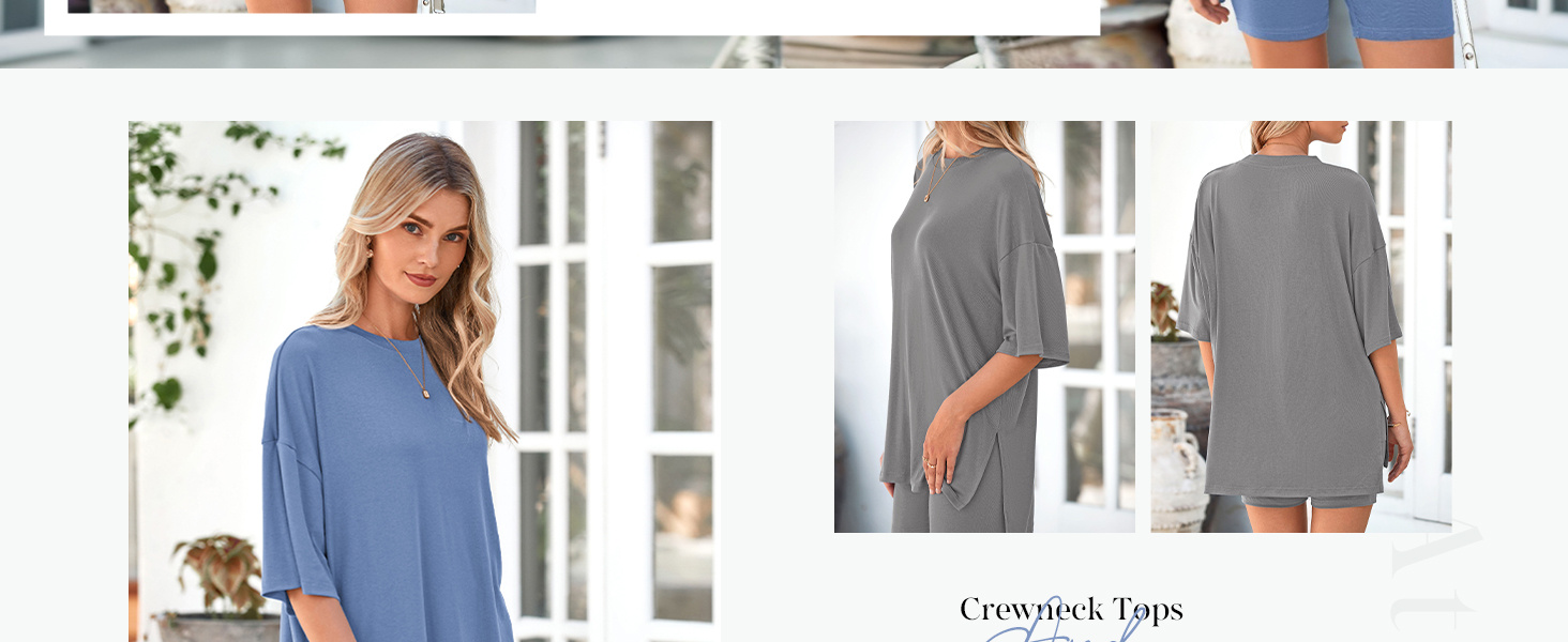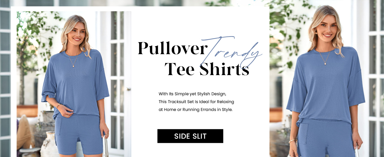 Chic Design: Two Piece Outfits; High Waisted Biker Shorts Set; Oversized Tee Shirts; High Low Shirts; Side Split Top; Short Sleeve Tunic Top; Workout Shorts with Pockets; Lounge Outfits for Women Soft Comfy; Pajamas Set