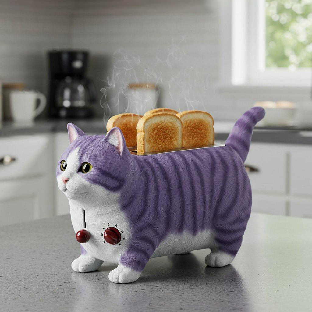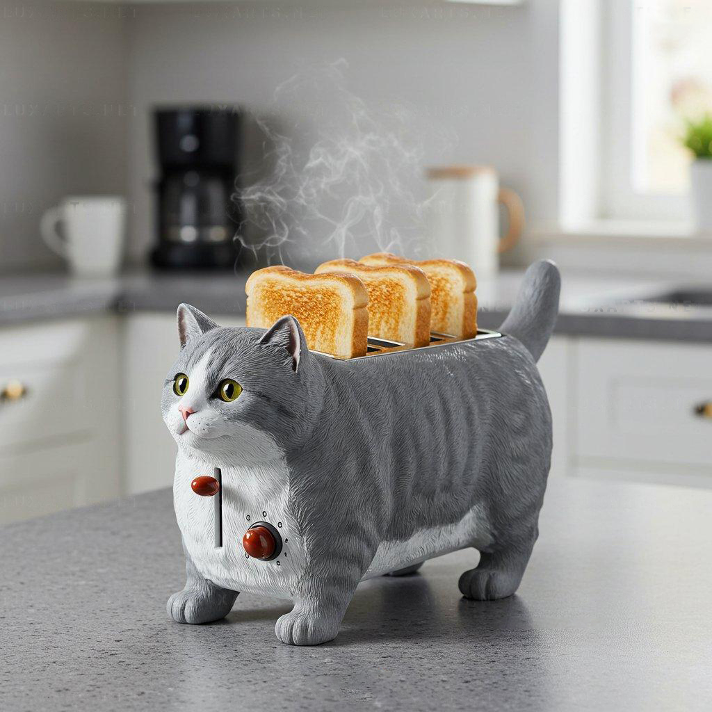 Meet the Cat Toaster – where cutting-edge functionality meets irresistible feline charm! This isn’t just a toaster; it’s a conversation-starting masterpiece designed to spark joy every morning. Crafted with meticulous attention to detail, its lifelike cat shape features plush curves, textured "fur" patterns, perky ears, bright eyes, and adorable paw-shaped feet with realistic toe beans. Watch as toast magically "pops out" from its back – a playful twist that turns routine into wonder. Ideal for cat enthusiasts and design lovers alike!