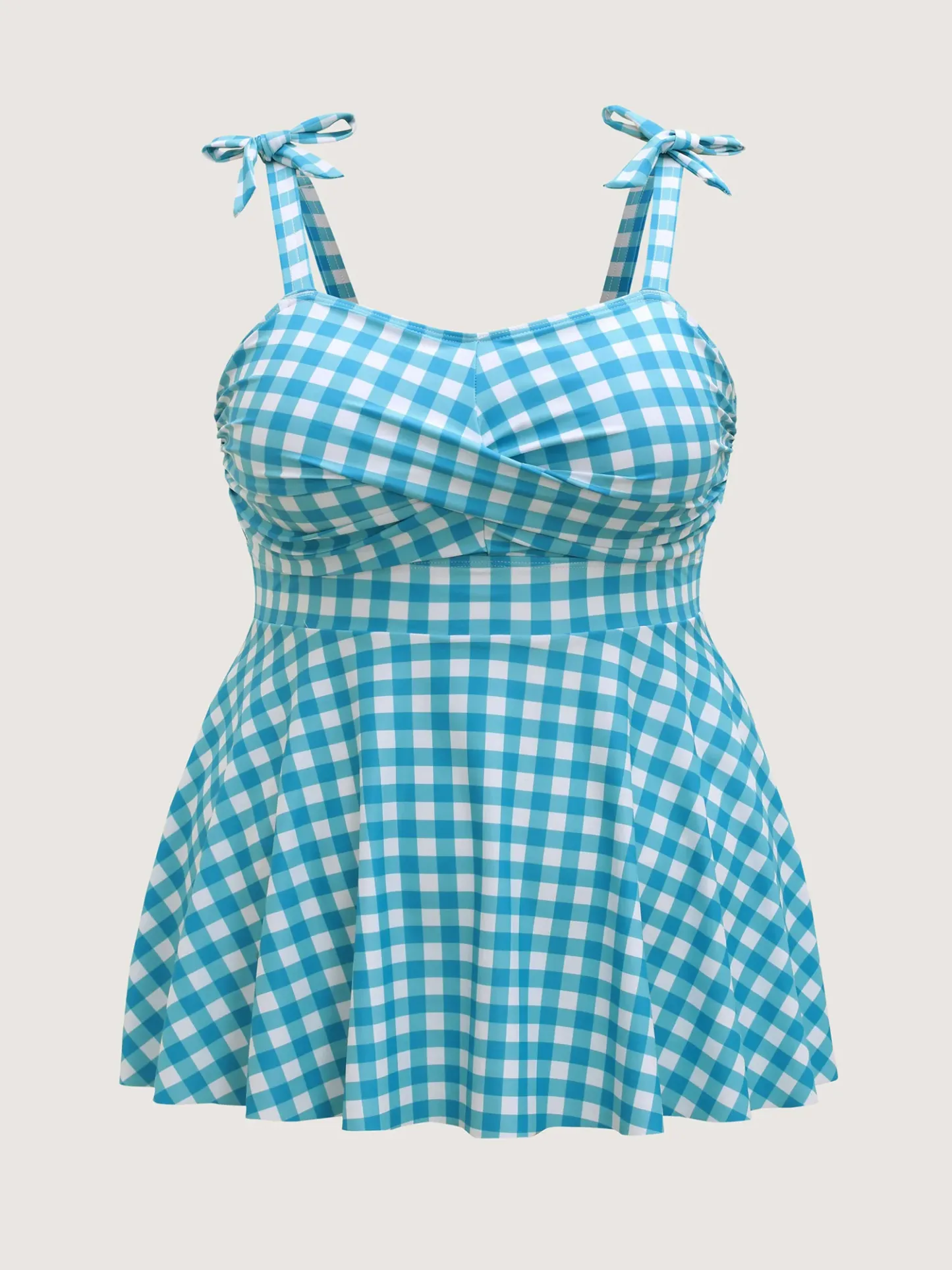 Checkered Twist Front Flared Swim Top