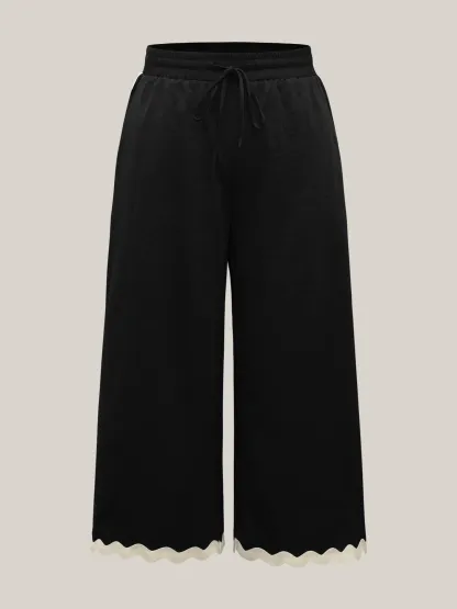 Color Contrast Detail Wide-Leg Pants