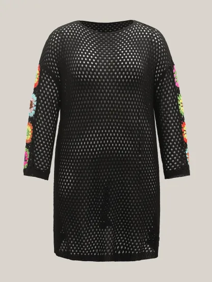 Crochet Shoulder Flower Cut-Out Swim Cover-Up