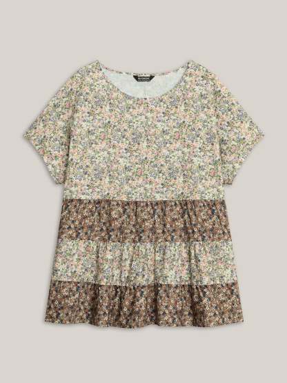 Ditsy Floral Print Tiered Blouse