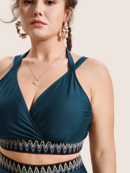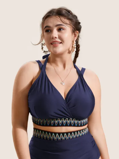 Embroidered Wrap Tie Knot Swim Top
