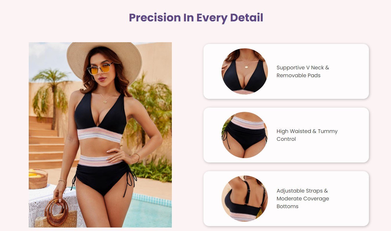 the adjustable wide straps and push-up bra provide comfort and extra support for a flattering and feminine look. The color block, contrast trim and v neck design make you stand out on the beach or by the pool.