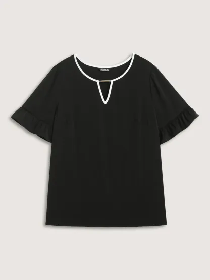 Metallic Detail Neck Cut-Out Blouse