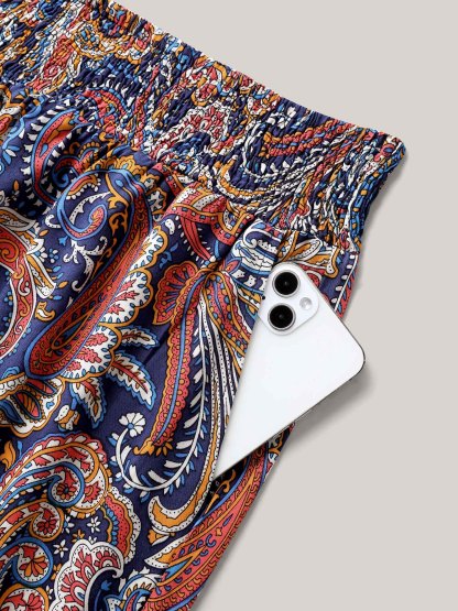 Paisley Print Shirred Waist Jogger Pants