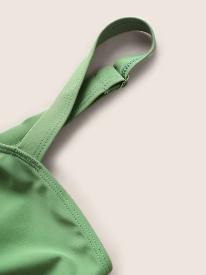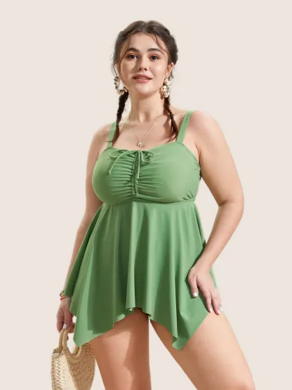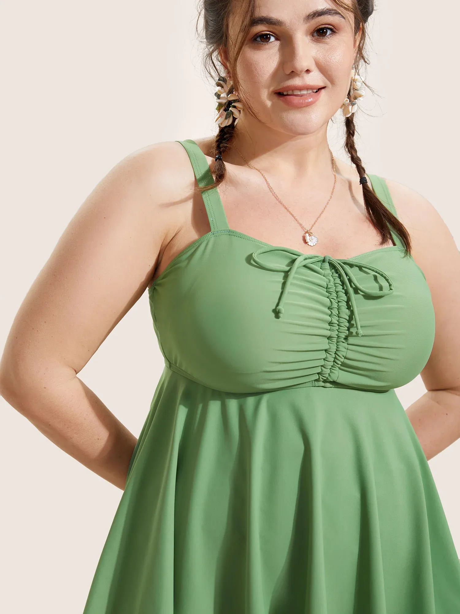 Plain Drawstring Ruched Adjustable Straps Swim Top