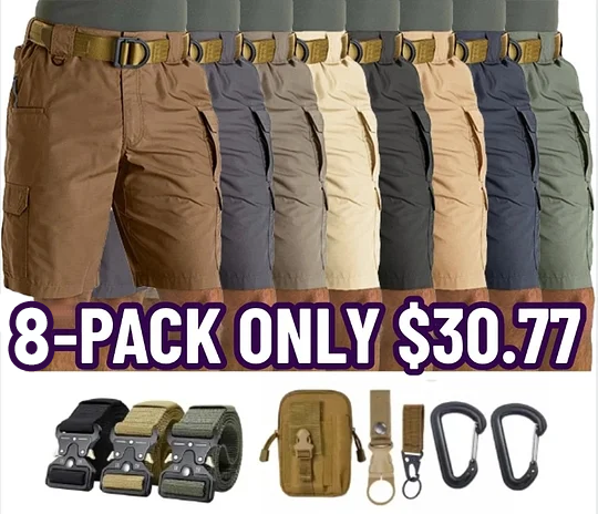 [6 Pockets] The cargo shorts have 6 pockets, including 2 side pockets, 2 deep pockets, and 2 back pockets.