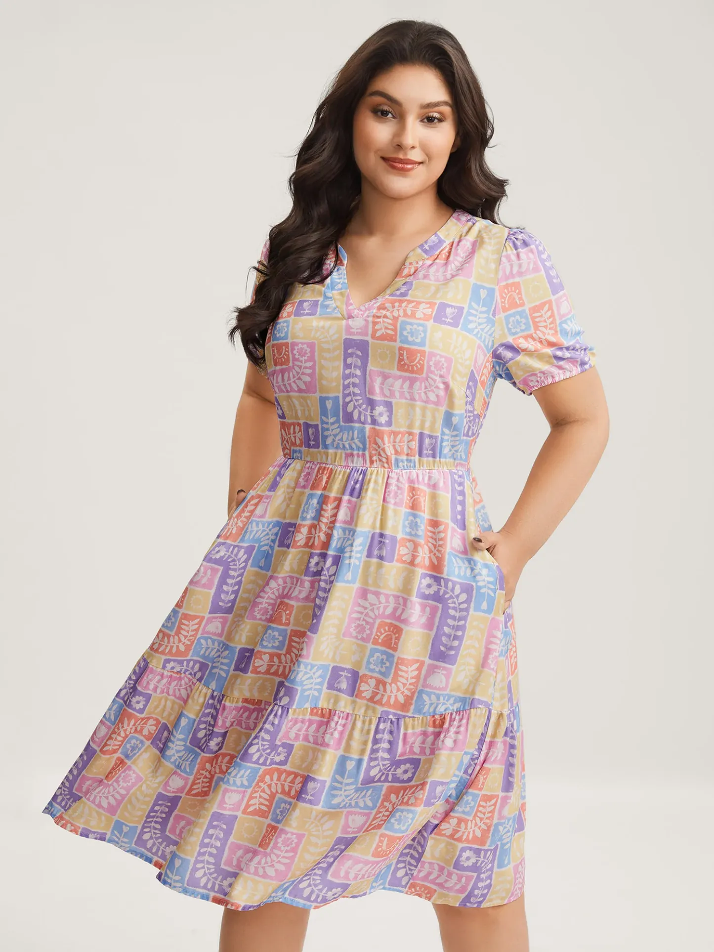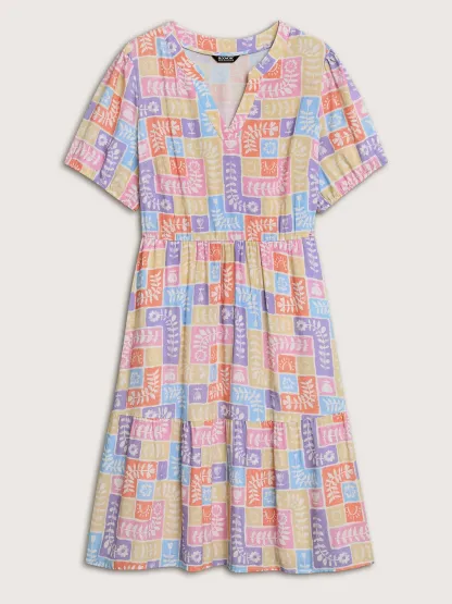 Rayon Floral Collage Stretchy Waist Midi Dress