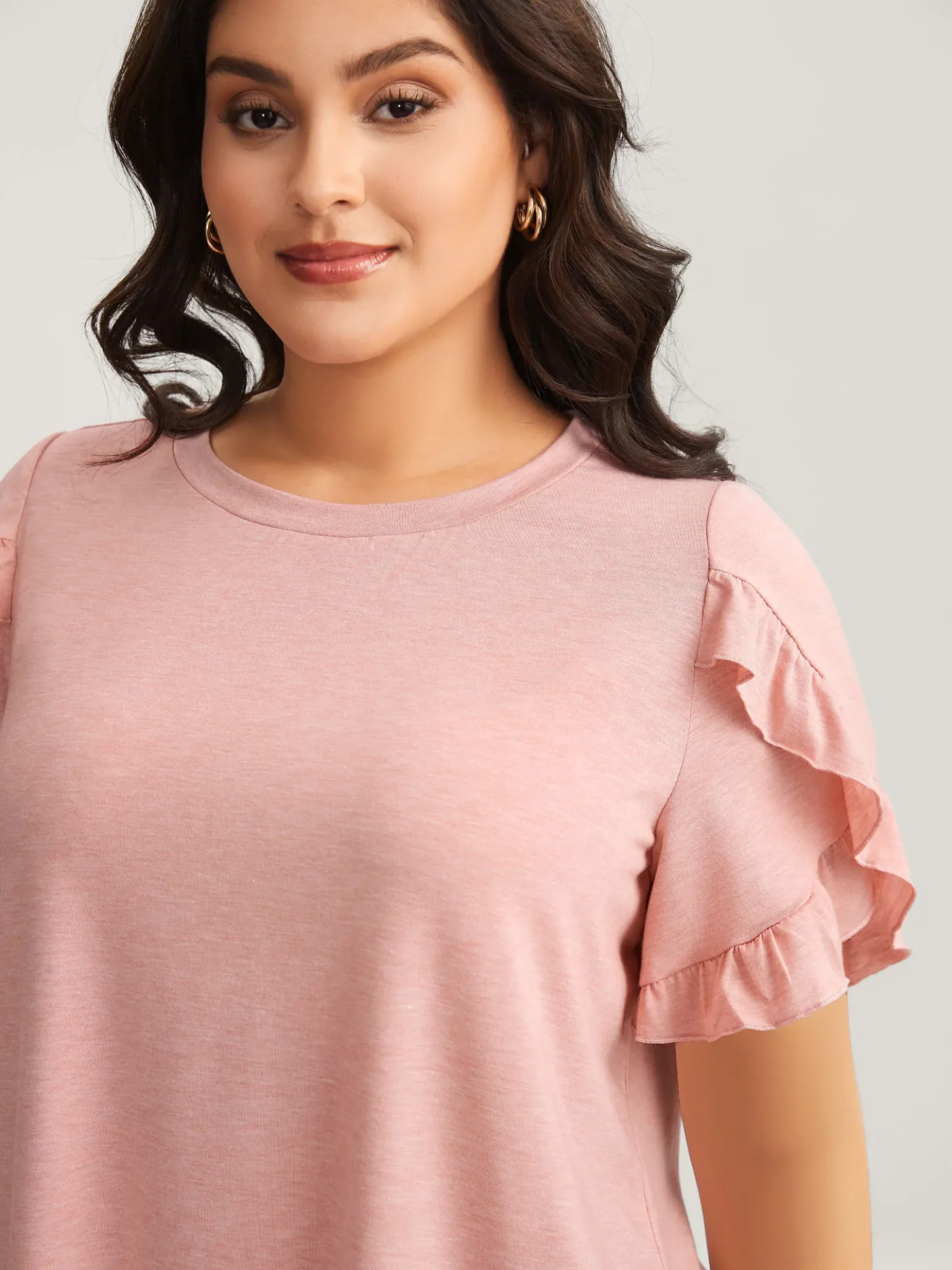 Ruffled Petal Sleeve Solid Knit Top