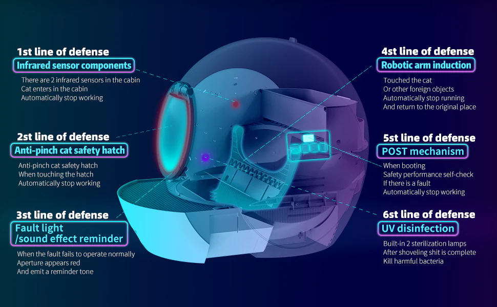 MULTIPLE SECURITY PROTECTION : Built-in LED safe alerts allow you to know the operating status. Multiple secure sensors assure the emergency braking will be activated protecting your cats to prevent any cases.