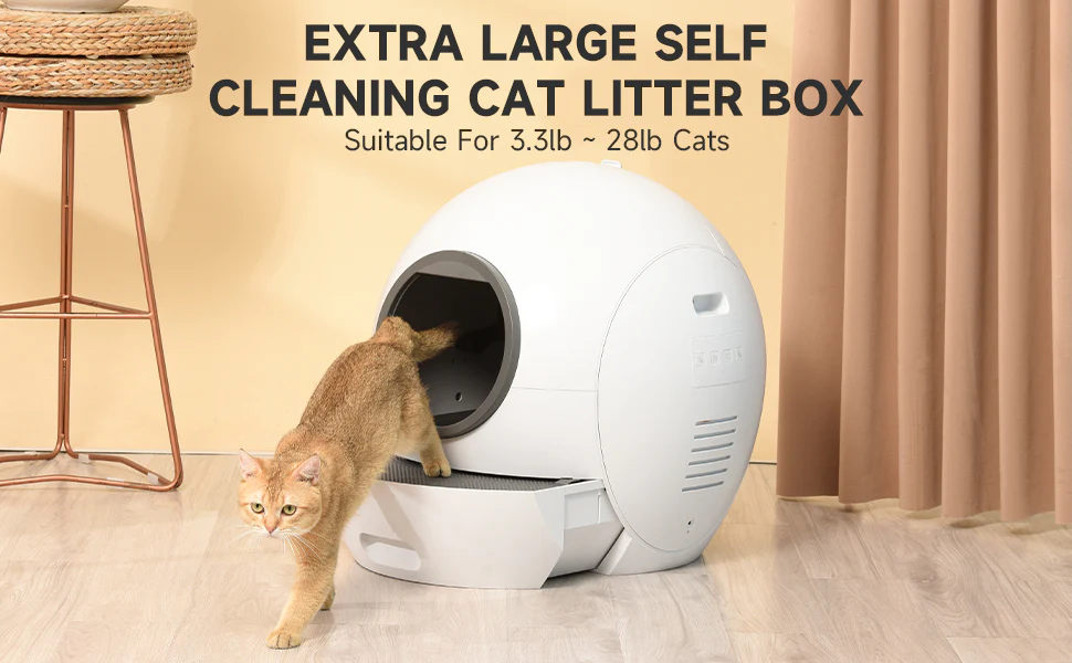 EXTRA-LARGE FOR MULTIPLE CATS: With 60L extra-large space that fits for multiple cats from 3.3lb to 28lb. And also the waste container allows up to 20 days free of scooping for one cat.