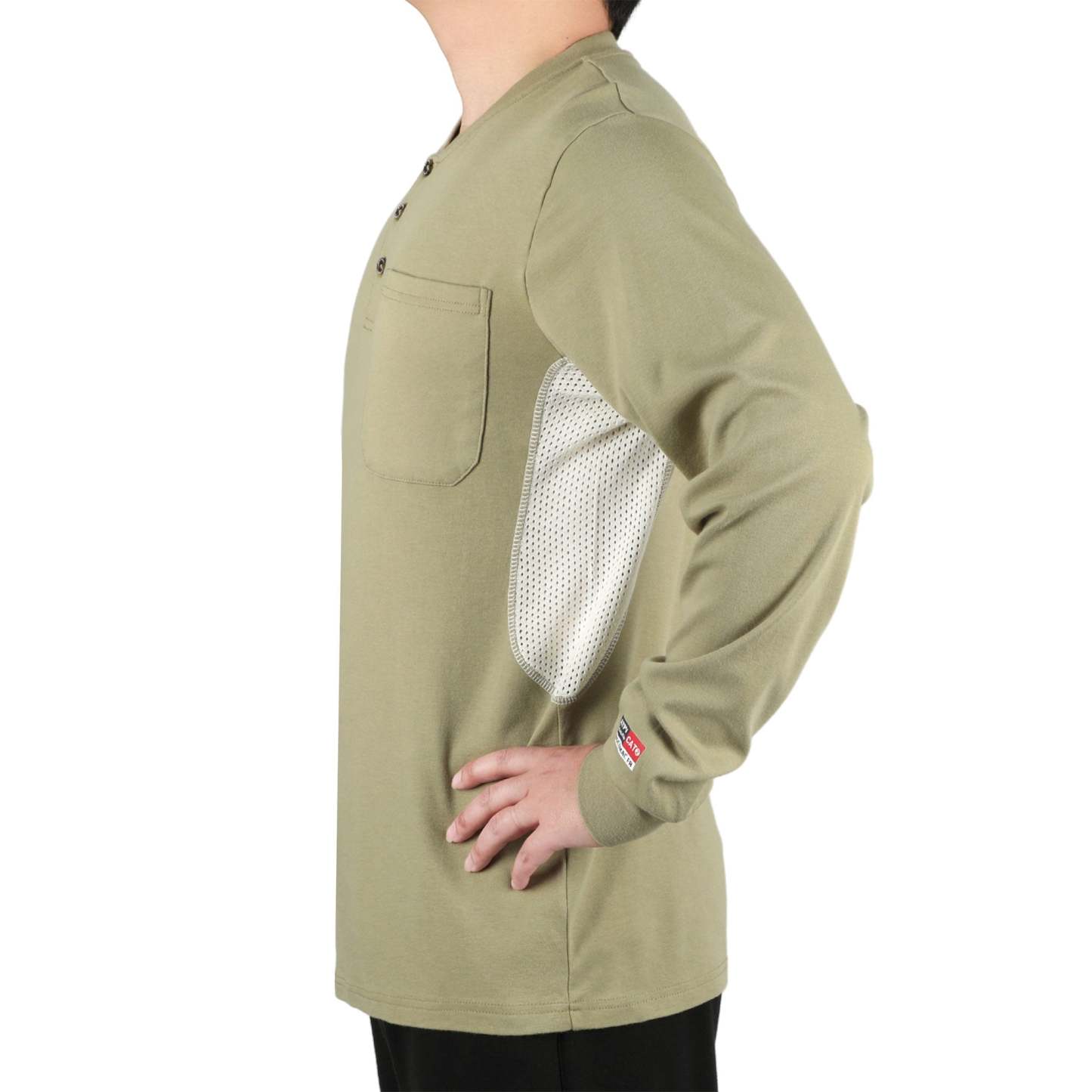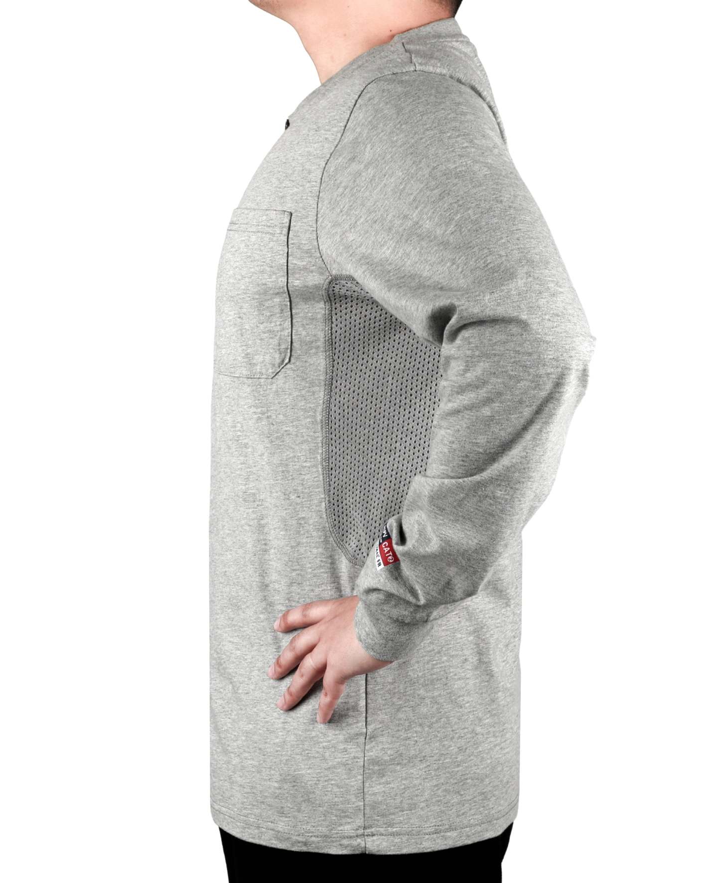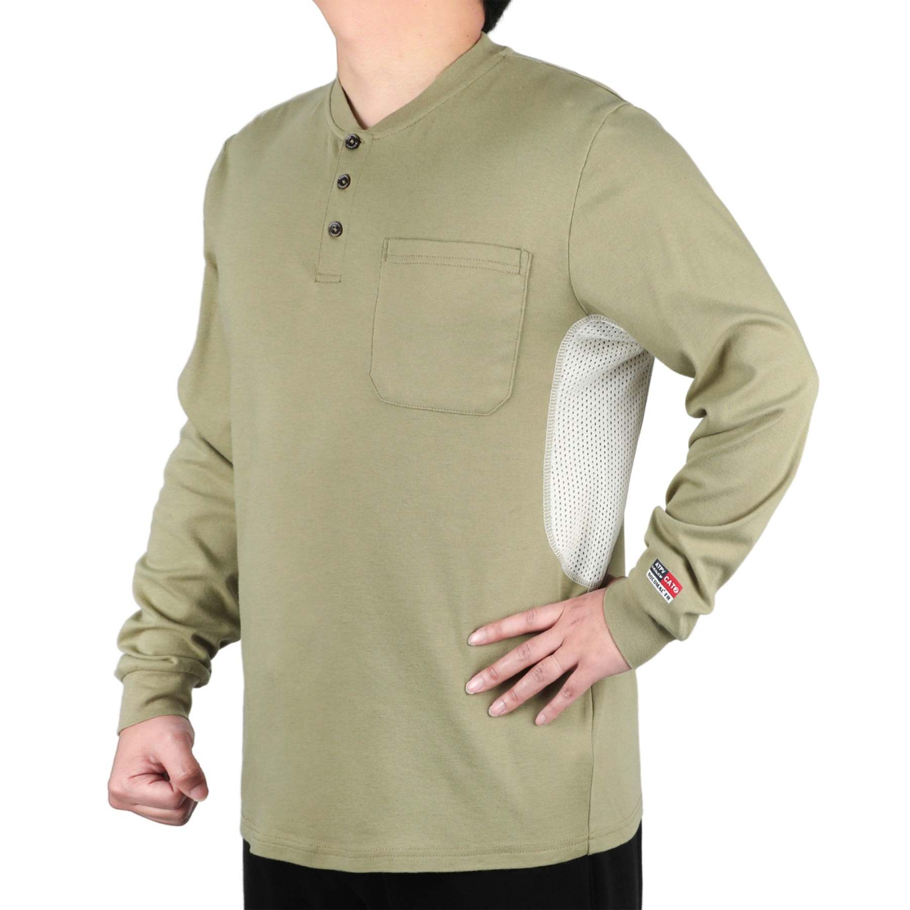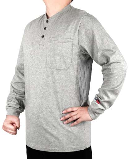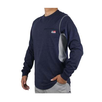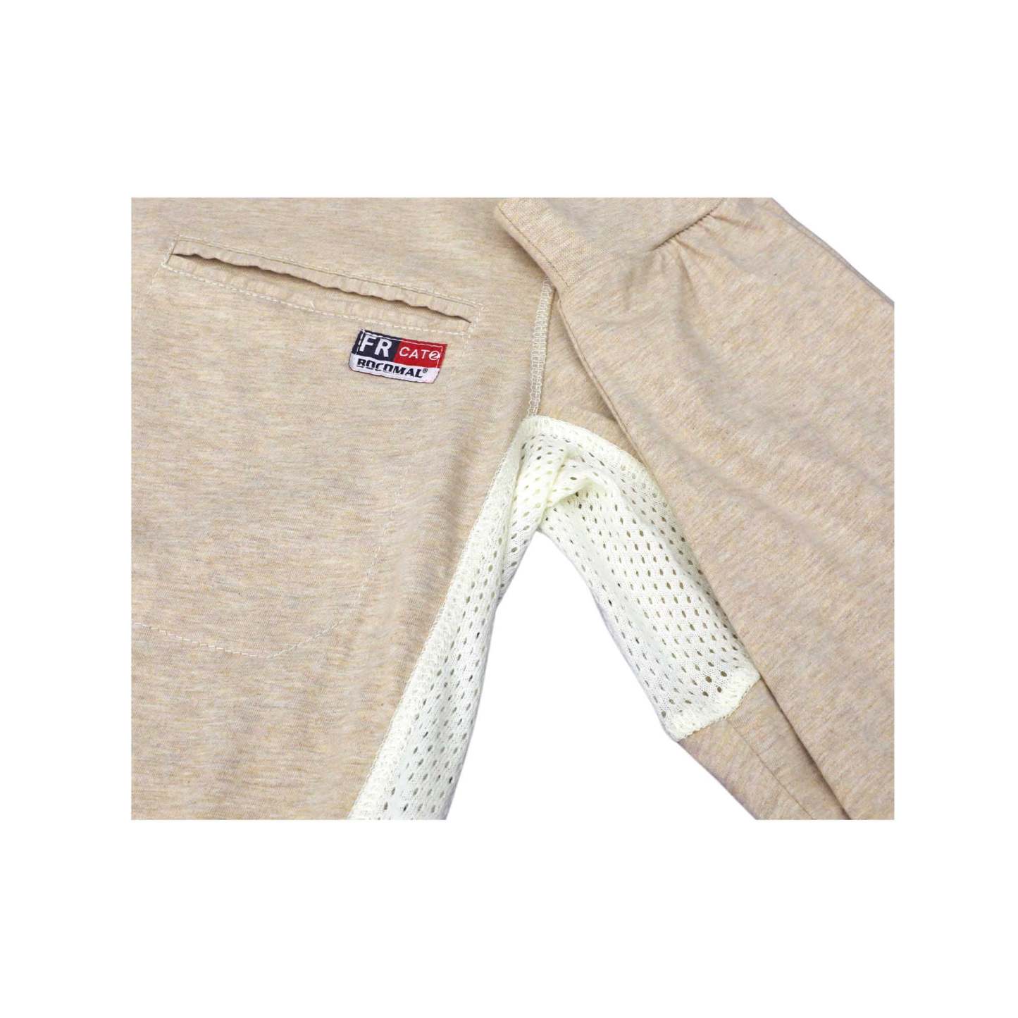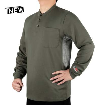 Breathable Vented: 6 oz 100% cotton Jersey smooth fit,breathable vented underarm design for summer hot days.Hidden chest slit pocket. Eye catch FR tag on pocket.