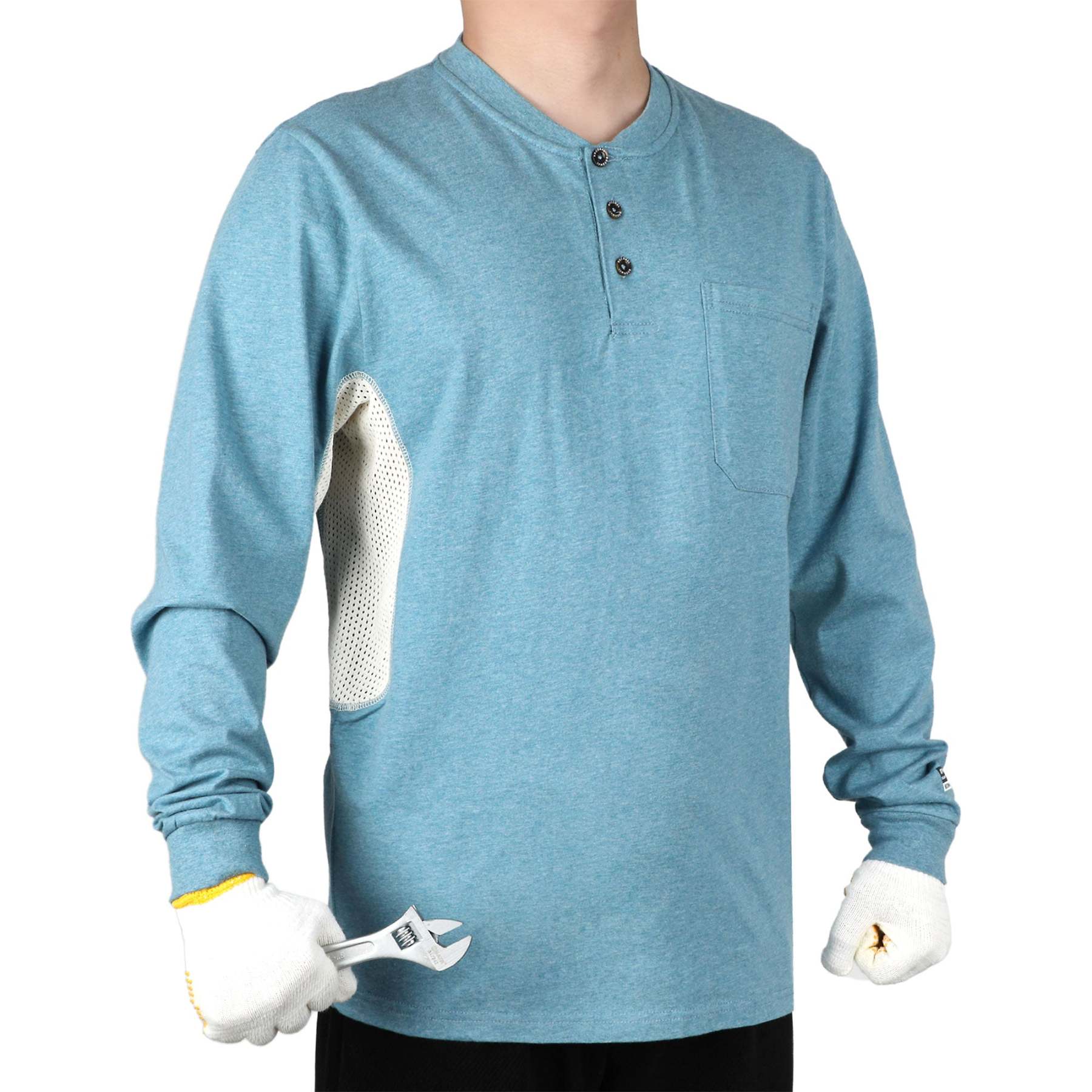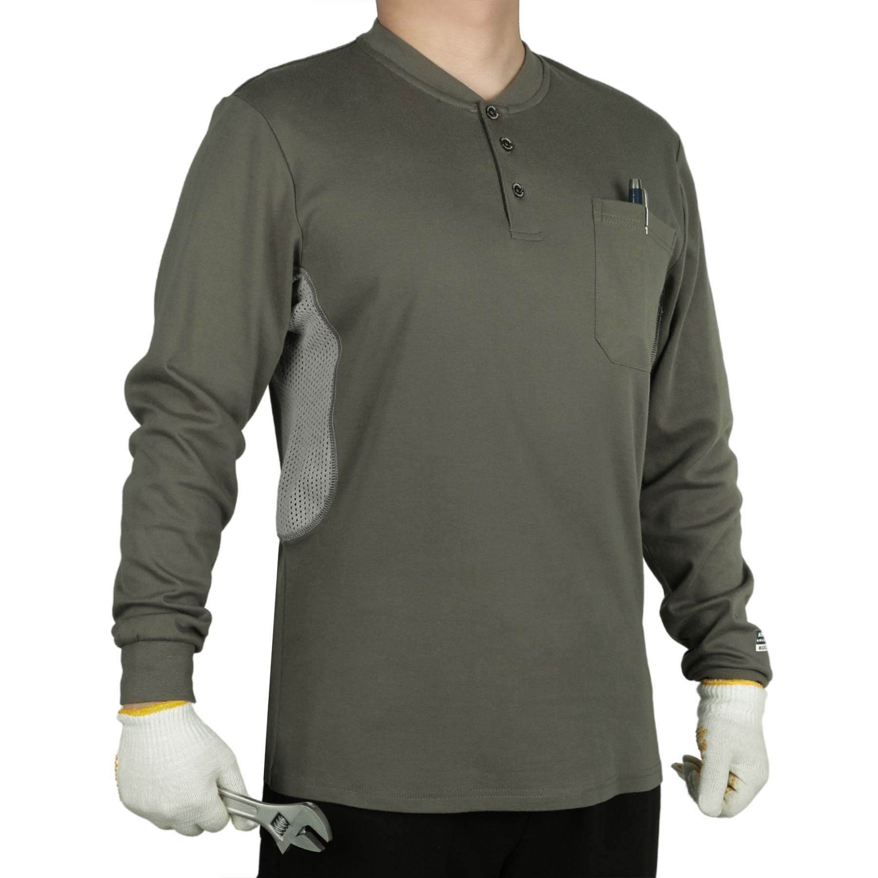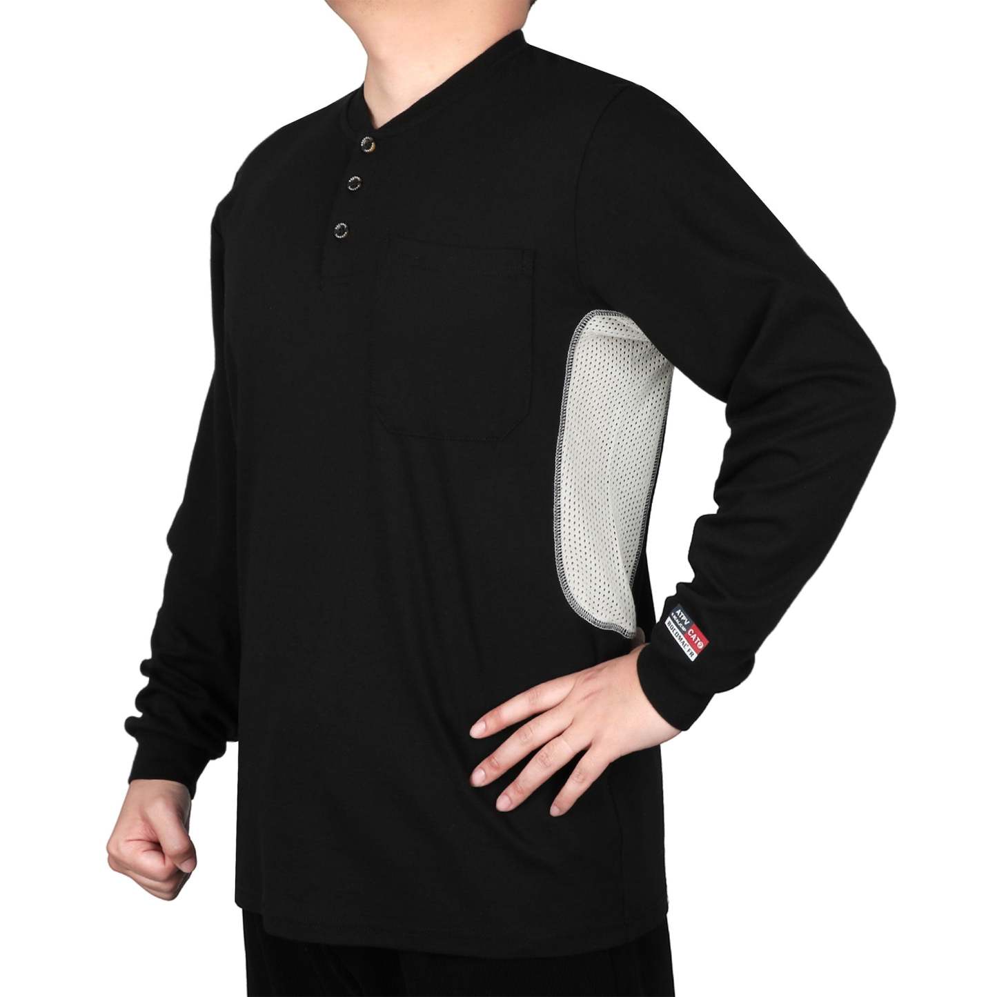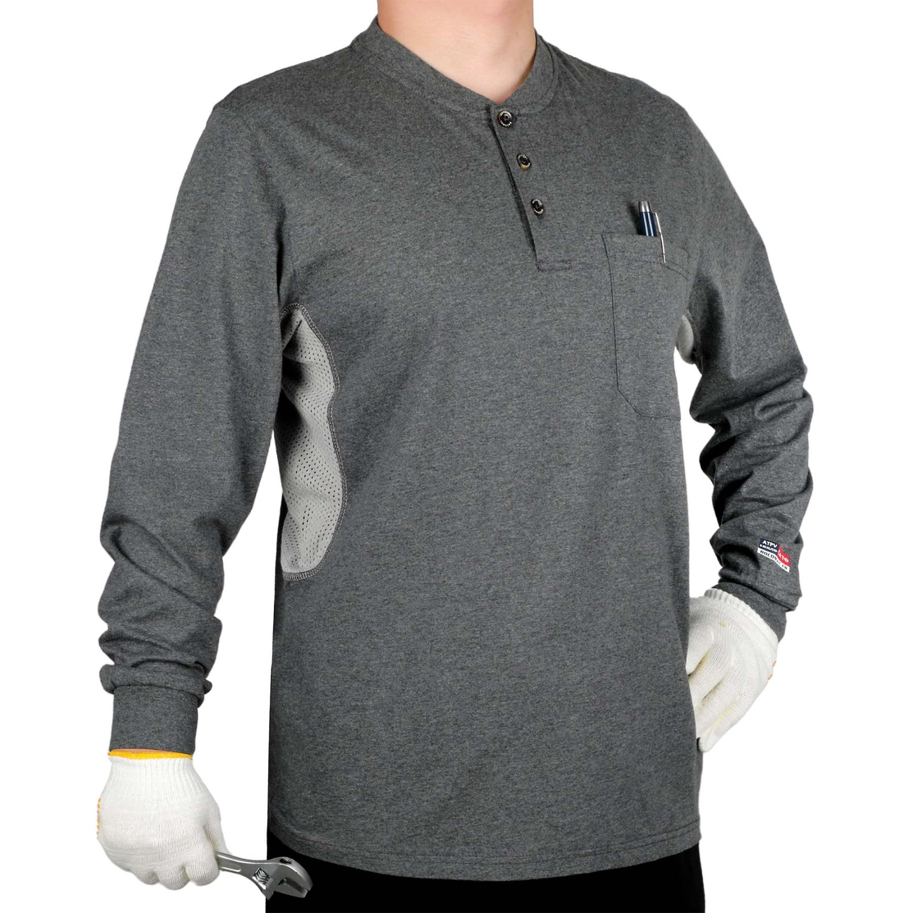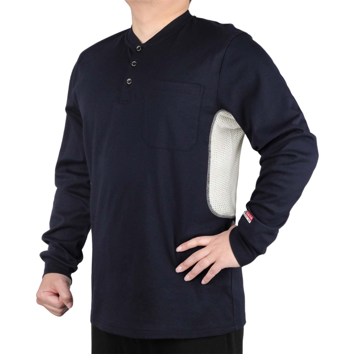 Breathable Vented: 6 oz 100% cotton Jersey smooth fit,breathable vented underarm design for summer hot days.Hidden chest slit pocket. Eye catch FR tag on pocket.