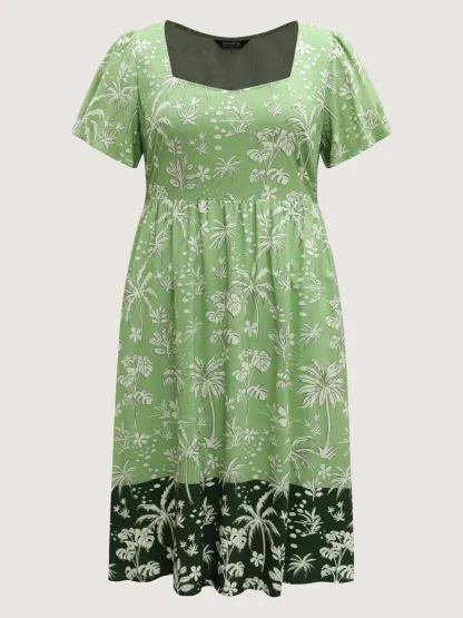 Tropical Mood Color Contrast Midi Dress