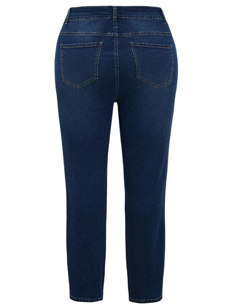 Very Stretchy High Rise Medium Wash Star Embroidery Jeans