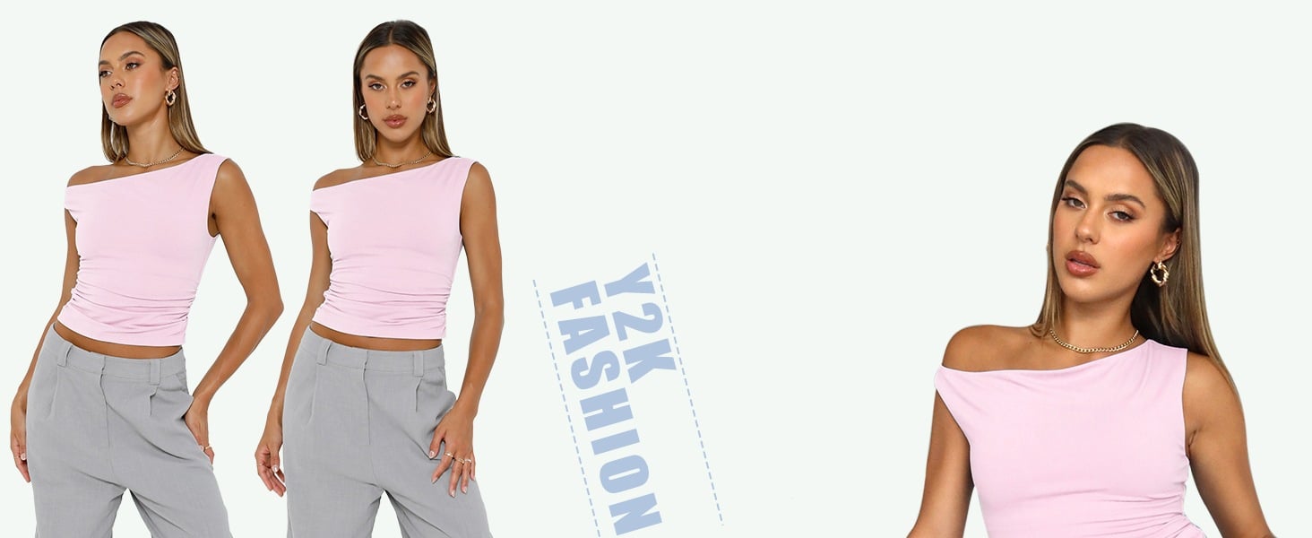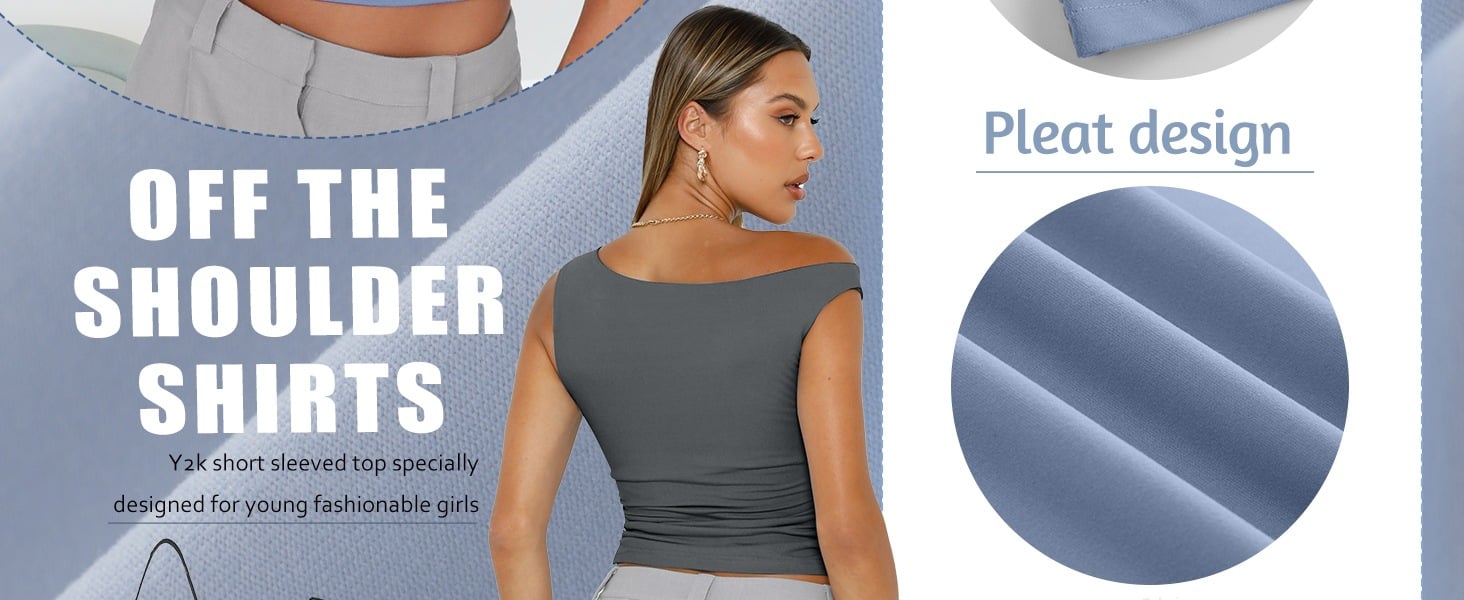 Y2k Design: Cropped and basic style, you can wear it regularly or fold it up like a crop top. Cute, slim fitted, casual style, asymmetrical neck, sexy shirts, boatneck tops