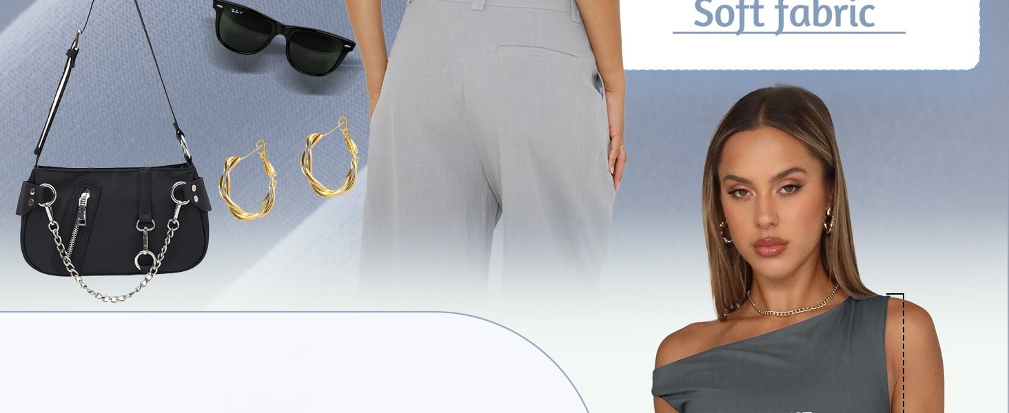 Soft Material: Summer sleeveless shirts for women, off the shoulder tops, going out top. It's made of 88% polyester and 12% spandex. light weight, super soft and high-stretch fabric with a second-skin feel