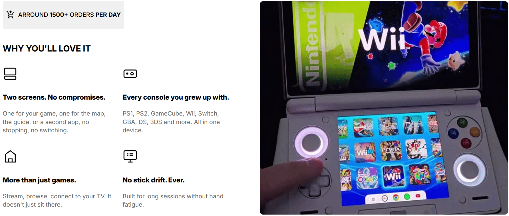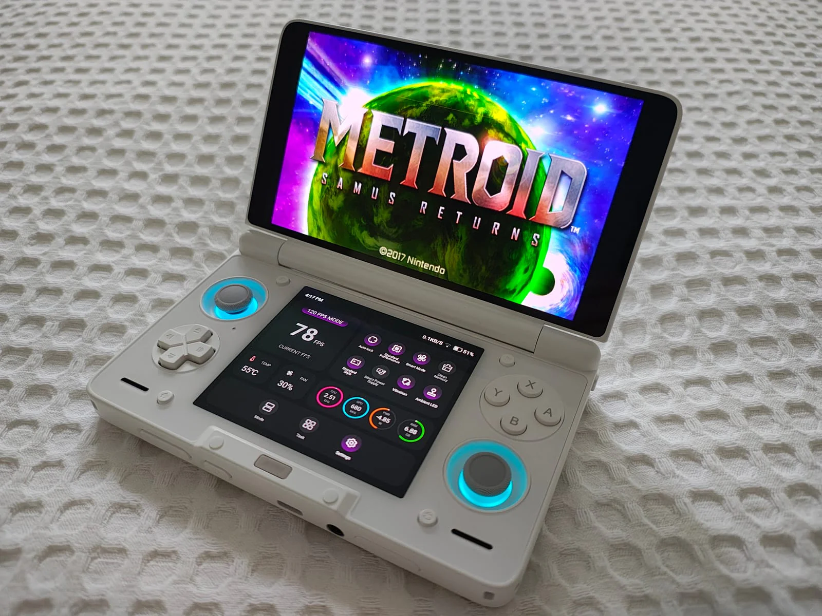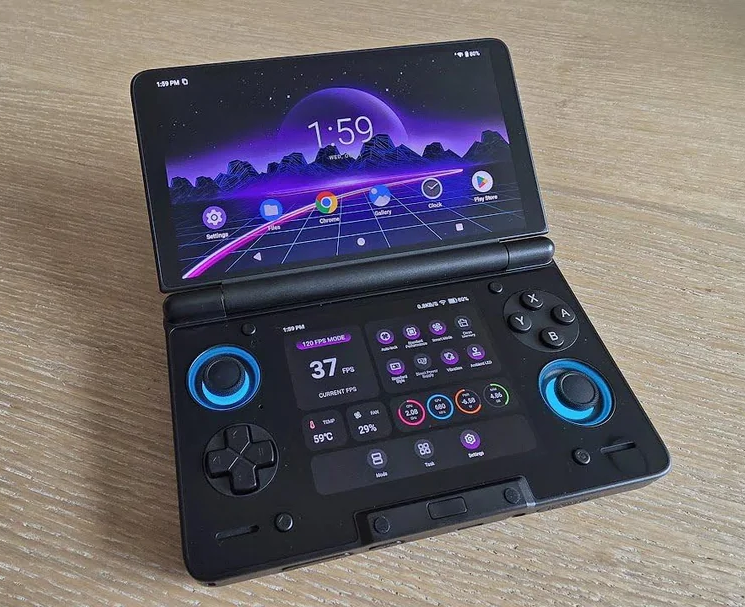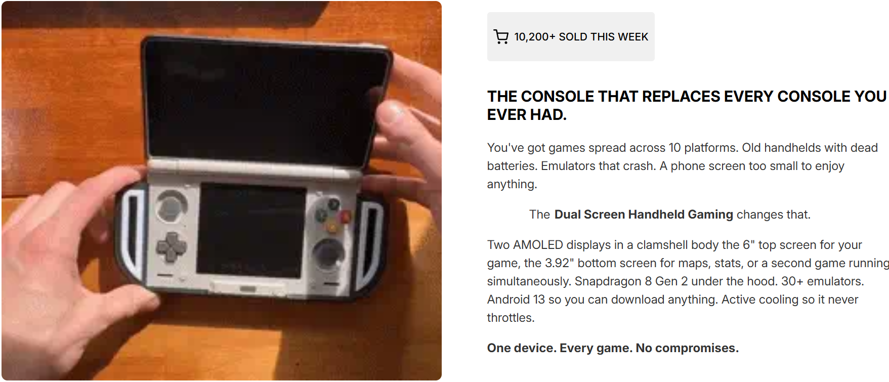 Two screens, zero compromise · 6" 120Hz top + second screen below play DS games as designed, or multitask without stopping